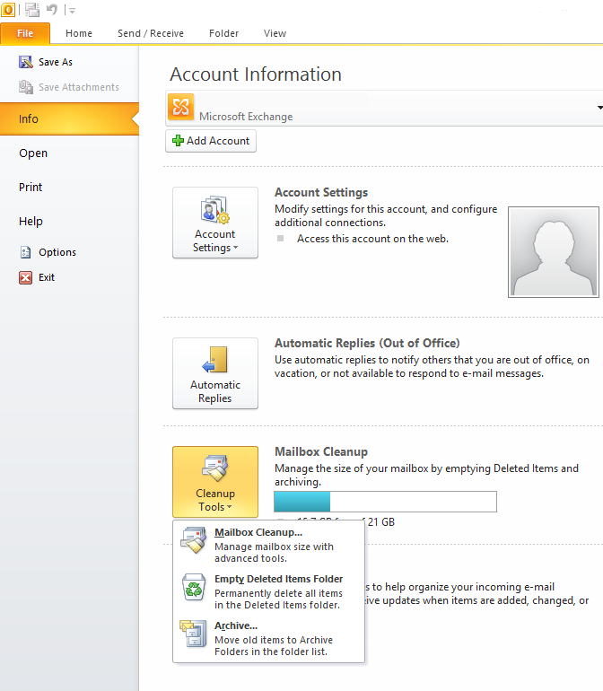 Open Outlook 2010 and go to the “File” menu and under “Cleanup Tools” option select Archive.