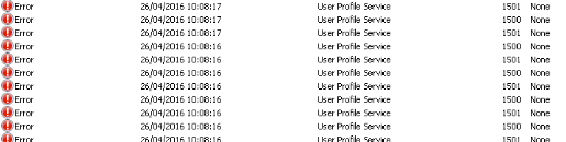 Then I cane across this site, but all I did was delete all the TEMP profiles from C:\users and the error in the event logs stopped.