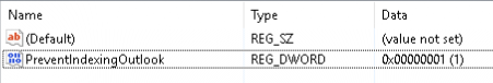 Add a REG_DWORD of PreventIndexingOutlook and set to a value of 1.