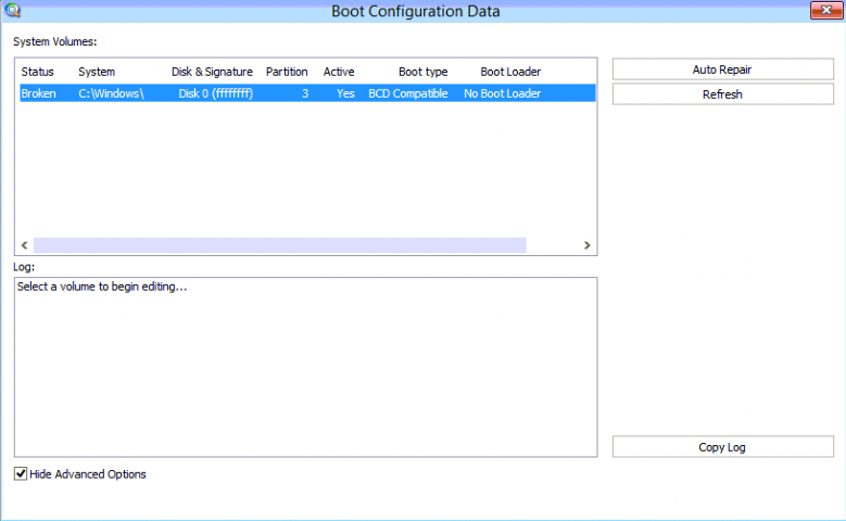 Go back into the Boot Configuration Data and run the Auto Repair.