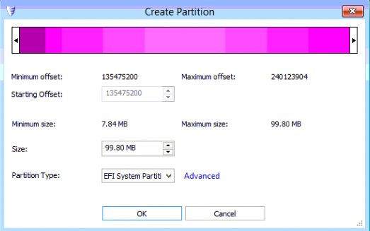 Create a new Primary partition and select Primary Partition type as EFI System Partition