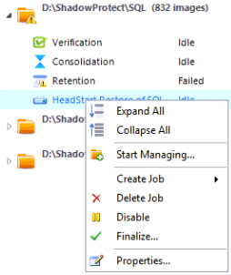 Under the Server in StorageCraft Image Manager, Right click on the HeadStart restore job and select Finalise.